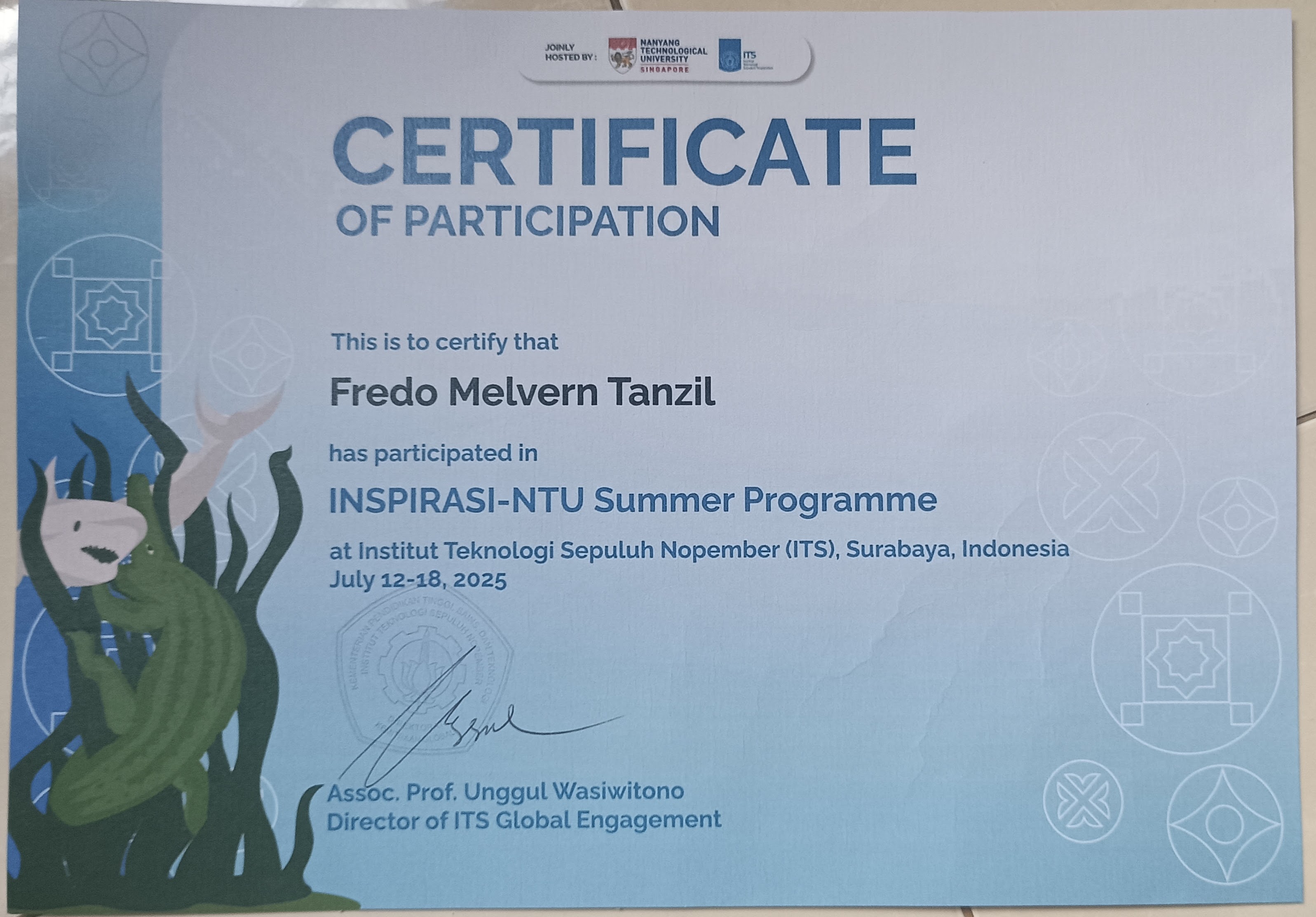 I had the distinct opportunity to participate in the fully-funded INSPIRASI-NTU Summer Programme on Sustainability & Renewable Energy 2025. This intensive 2.5-week international mobility program was a collaboration between Nanyang Technological University (NTU) in Singapore and Institut Teknologi Sepuluh Nopember (ITS) in Surabaya, Indonesia. The program was designed to immerse participants from Science, Technology, Engineering, and Mathematics (STEM) backgrounds in the core principles of sustainable development and innovation.