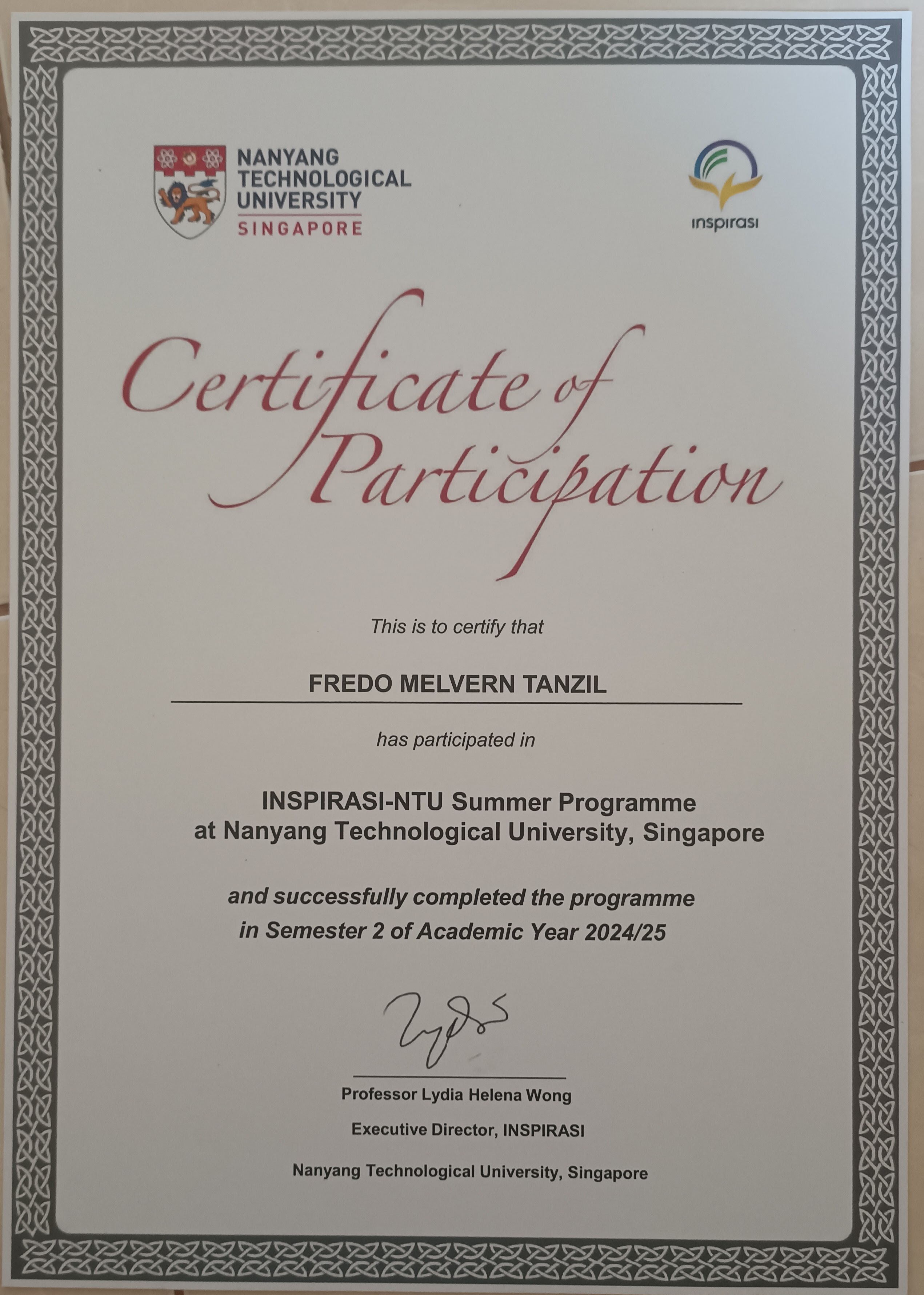 Participation in the INSPIRASI-NTU Summer Programme significantly enhanced my understanding of global sustainability challenges and cross-cultural problem-solving. It provided a unique platform to collaborate with international peers and faculty, sparking new ideas and fostering a commitment to making a positive, sustainable impact in my community and beyond.