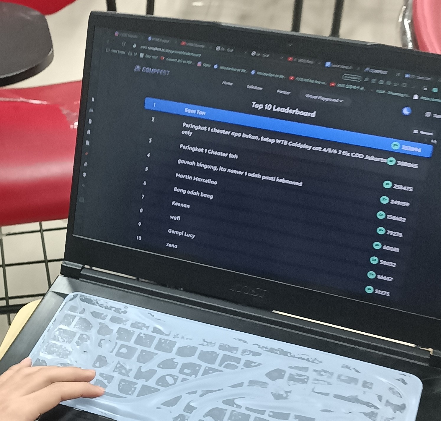 Moreover, one time there’s multiple hackers got massive amount of points on leaderboard, probably Compfest’s website security flaw, making the leaderboard taken down for a moment.
