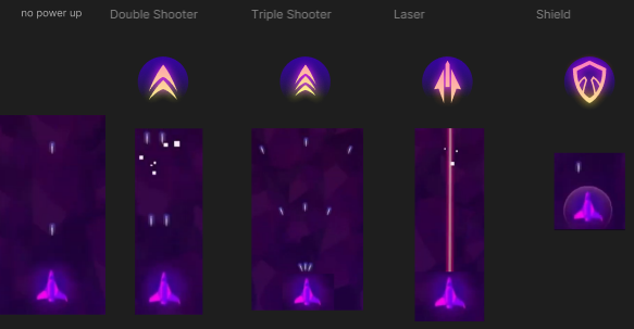 The shield will give additional ‘bonus life’ if player got hitten, this power up can be applied together with other power ups. The rest of them are self-explanatory.