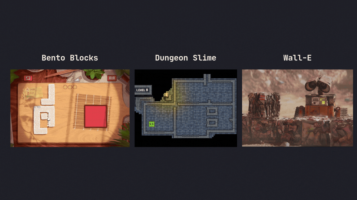 With inspiration from Dungeon Slime, Bento Blocks, and Wall-E, I wrote the idea as soon as possible at a piece of paper: